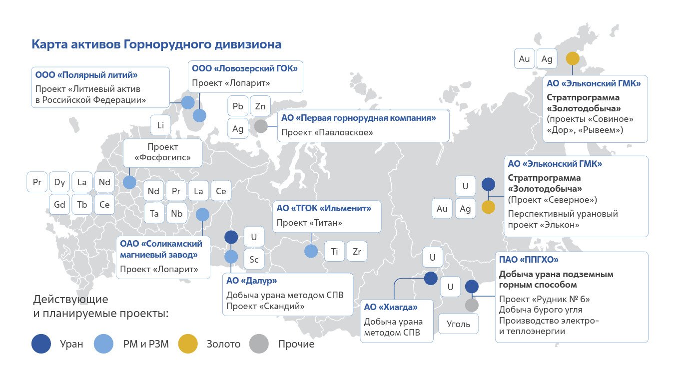 Эта карта демонстрирует масштаб деятельности Горнорудного дивизиона «Росатома»